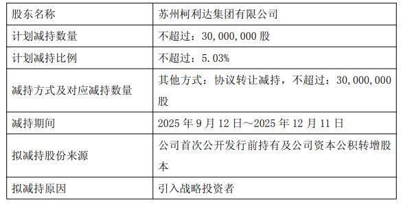 中国经济网络北京,9月9日,圣基里达(603828.SH)发布了昨晚控制股东协议的转让计划中的公告,指出宣布披露日期,股东苏州·凯利达集团有限公司的控制日期,股东苏州·凯利达集团有限公司(Ltd.所有这些都不是通过转移的股票来限制。持有的股票资源是该公司的原始公开发行和资本变更。在公告披露日期开始交易3天后的6个月内,Kelida集团的目标是通过转让协议转移公司共享,该协议的价格为公司共享总资本的5.03%。计划减少共享的原因是介绍战略投资者。 Kelida Group计划根据最新的关闭价格为4.89元的元人民币计算,计划现金1.47亿元。圣凯利达(St Kelida)于2024年9月19日晚上发布了有关控制《股东协议》的转让计划的公告,称股东公司Suzhou Kelida Group Co,Ltd。在交易后的6个月内,在6个月内,计划通过转让协议转让公司分享公司的分享计划,该协议的价格为5.03%,费用为5.03%。 2024年9月30日晚上,圣凯利达(St Kelida)发布了一份提醒公告,宣布了股东计划中的一部分股份和股票的计划,指出,该公司股份(占公司共享总资本共享的总资本共享的5.03%)与yingzhong的智能协议的智能同意,并以总价格转让价格,价格为51亿美元。这种权益的变化不会导致公司控制的变化S股东并实际控制。圣凯利达(St Kelida)于2024年10月30日宣布了凯利达(Kelida)的宣布,通过控制股东完成转让登记,称该公司收到了中国证券存款和清算公司(Colesitory and Clearing Co,Ltd.)的“证券转让注册信”。 “ yingzhong Intelligent”)签署了“股票转让协议”。 Kelida Group计划将30,000,000个不可阻挡的流通公司分享该公司(提供公司共享总资本的5.03%),并通过转让协议的转让。 Kelida Group的股东已完成,转让日期为2024年10月28日。由证券监管委员会证券监管委员会批准[2020]编号。离子。税收,实际筹集的资金数量为2026.6186亿元人民币。学会公司(特殊的一般合伙企业)隆琴验证编号[2021] 361Z0004“资本验证报告”。该公司已为高层资金采用了特殊的帐户存储管理。公司股票私人股份的赞助商是工业证券有限公司,赞助商代表是Mu Baomin和Wanka。目前,St Colida的共享价格低于额外的发行价格。