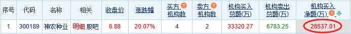 中国经济网北京12月10日电 神农种业(300189.SZ)今日涨停,收于6.88元,涨幅20.07%。龙虎榜数据显示,金额最大的神农种业买家前五名中,有4家机构承诺席位;金额最大的神农种业卖家前五名中,有2家机构独占席位。据统计,今日神农种业购买的机构席位净值为26537.01万元。